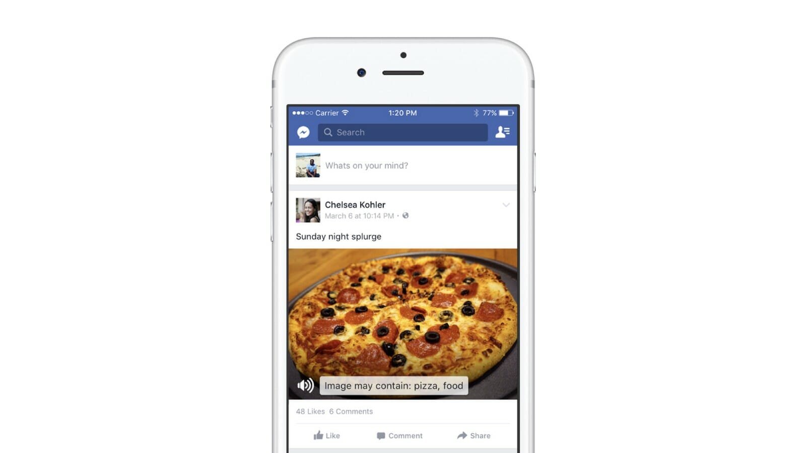 For example, with over 36 million blind people , and over 217 million with a mild to severe visual impairment (WHO, 2018), many people may feel excluded from online conversations around photos. The automatic alternative text feature in Facebook the generation of descriptions of photos that can be played by those users through a screen reader so they can join a discussion.