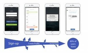 Building an attachment with your users is important and first impressions count. The first stages of an app are a perfect opportunity to advertise your product to users, yet many products push them away. The first page should show the benefits of your product and allow the user to explore and play around on your app. If you build the relationship from the start, it’s much easier to show your strengths over time. But if you can’t even get past the first impression, you won’t have the chance to point out the benefits of your product.