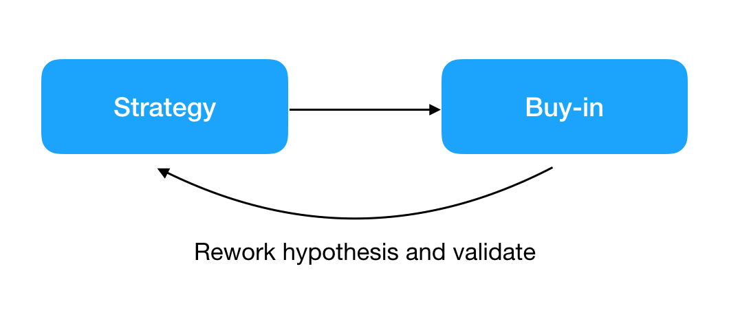 The framework categories are not phases in the product development lifecycle (even though some may appear so). The boundaries are fluid, and an overlap of activities across categories is common. Getting stakeholder buy-in may need work from design and architecture; strategy needs to be validated with customers using examples or prototypes from design. Such specifics depend on the nature of the problem space and the solution being considered. And clearly, iteration may be needed. For instance, failing to get buy-in the first time could mean returning to the strategy question and tweaking the hypothesis before getting it validated again with customers. Issues in delivery may necessitate revisiting the question of our branching model in the CI/CD environment.