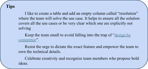 - Resources are limited. In many cases, the team won’t be able to tackle all of them. This is where prioritization is put into practice and the team decides to explicitly ignore certain use cases. That’s an acceptable outcome.
