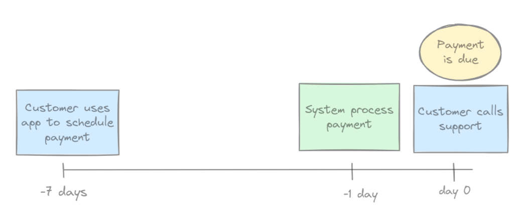 - They use our mobile app to schedule a payment for the day before it is due. The system “waits” to charge the customer until a specified date.