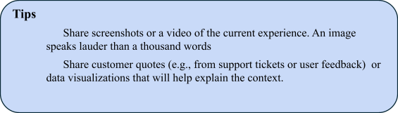 - The story begins by providing all relevant background information that the engineering and design teams might not have.