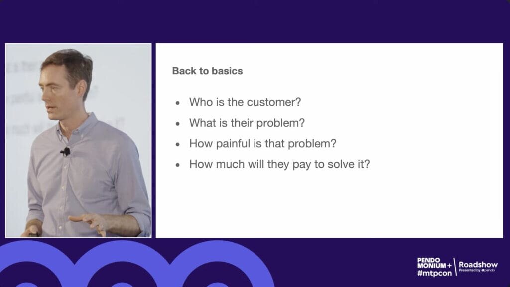 It always comes back to solving human problems. He encourages product managers to go back to the basics of solving customer problems by asking these questions: