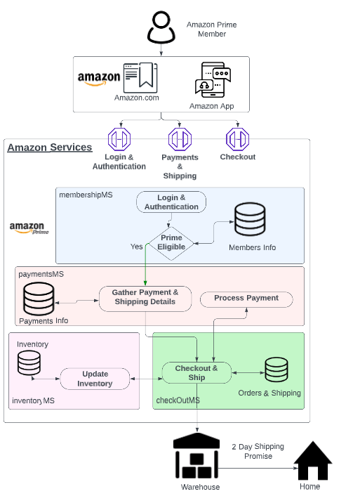 Below is a concept of how these Microservices could be enabling Prime members to order with Amazon.