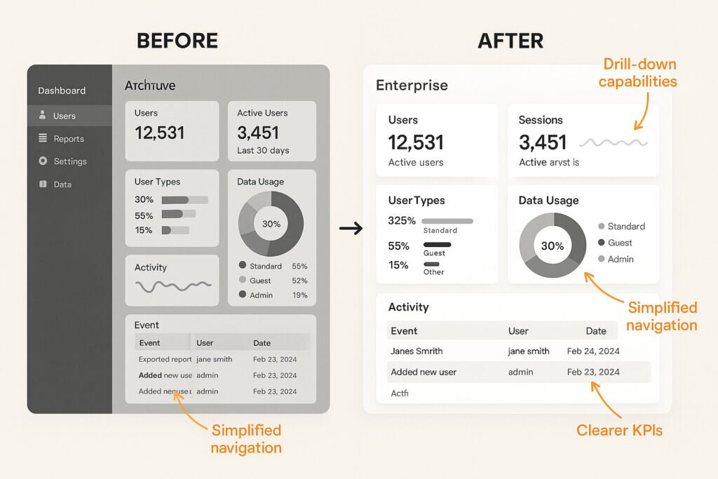 - Based on these in-depth insights, our team made targeted improvements to the dashboard, such as clarifying navigation and improving call-to-action buttons to guide users more smoothly through their journey.