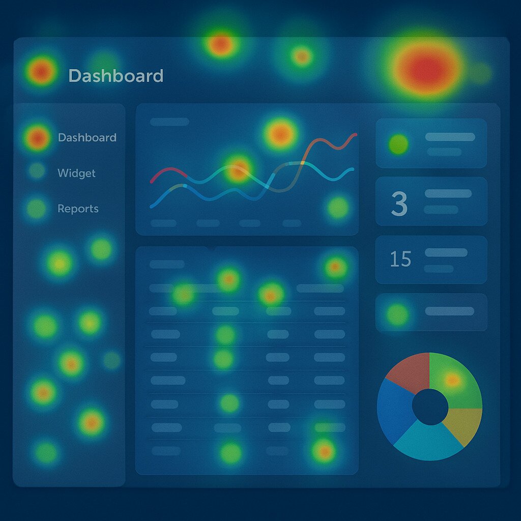 - Heatmaps and session recordings were employed to visualize where users spent the most time and how they interacted with key dashboard elements.