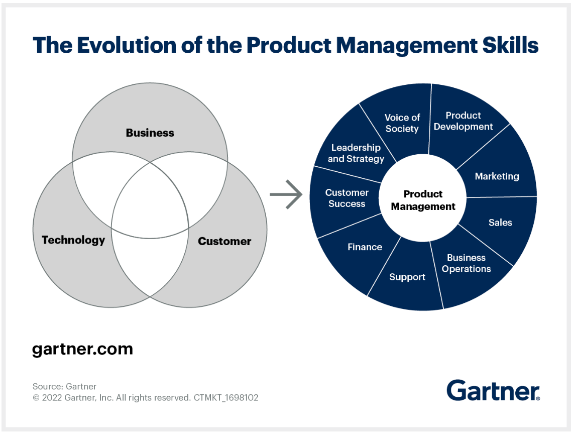 Performance management becomes even more challenging for product managers where the roles involve a lot of qualitative analysis, product sense, evaluations, delivery, or execution perfection while driving the outcomes which is the only area that can be quantified. Other areas like cross-functional team leadership, ability to influence stakeholders, and going to market on time while maintaining good working relationships are qualitative inputs that could be considered. No wonder the role of a product manager has evolved significantly which is also evident in the below image from Gartner depicting the evolution of product skills.