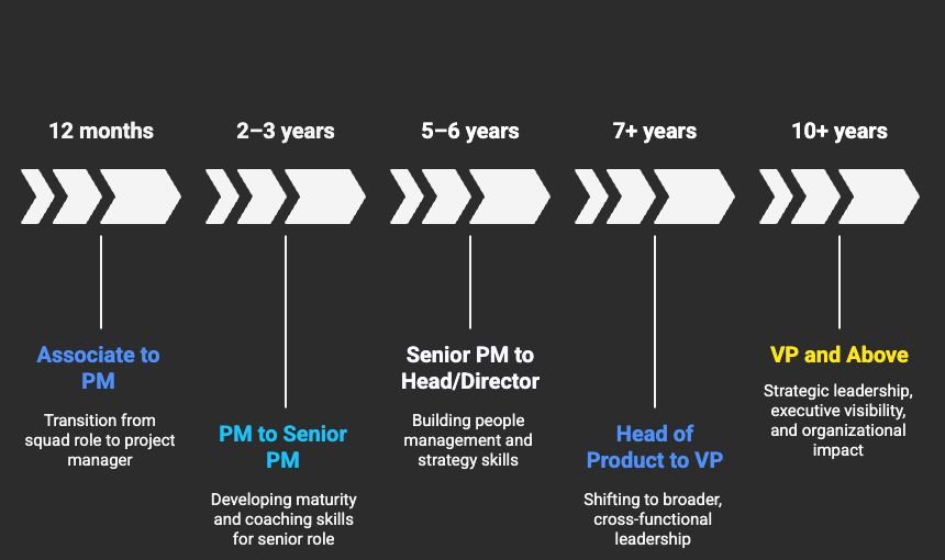 I’ve seen people move from associate product manager to product manager within a year. It depends on their entry. If they're coming from a Business Analyst background, it can be a quick process because they’re in the squad. If someone transitions into product from marketing, it might take longer because they may need more time with the engineers.