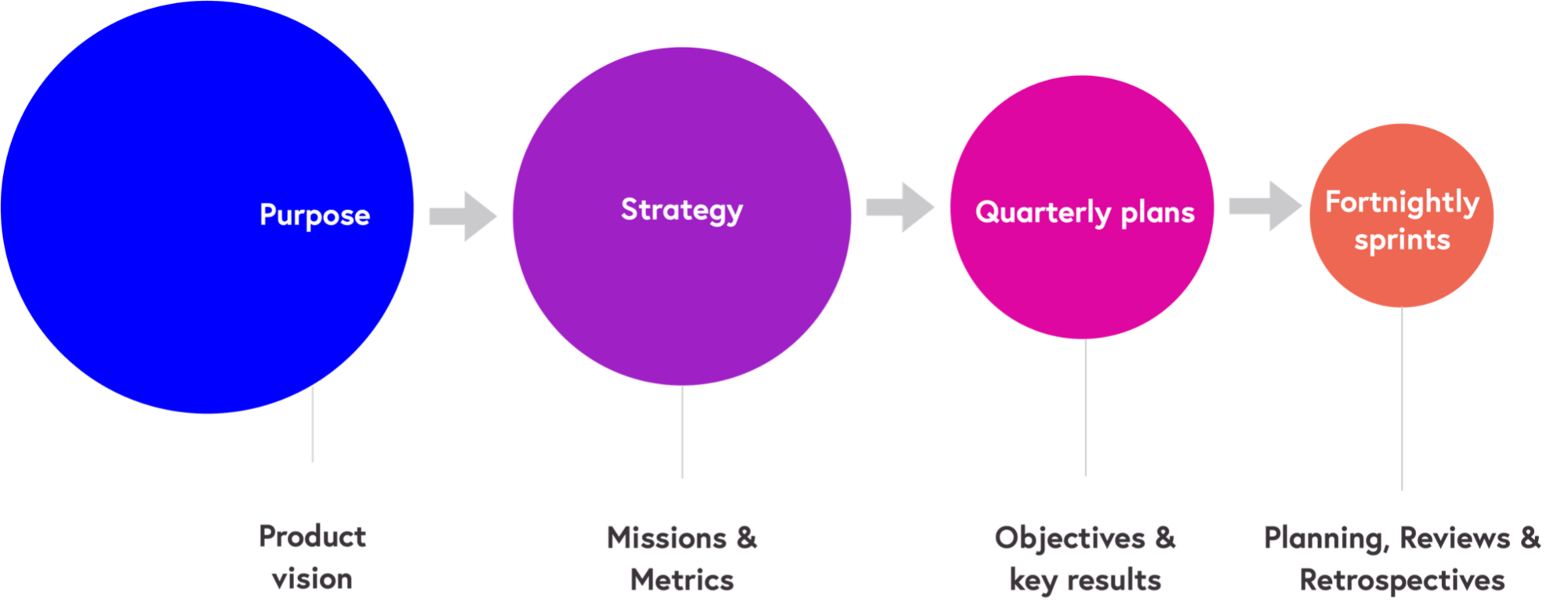 It’s also important to give teams a mission that supports the long term vision and mid-term strategy, rather than a specific product or set of features.