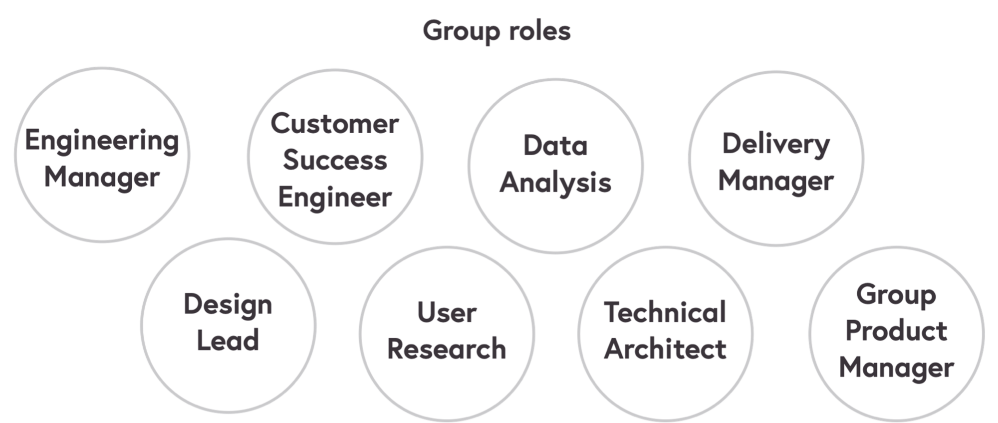 As well as these communities, we also had cross team players. Roles like UX researchers, technical architects, delivery managers, engineering managers, data analysts… you don’t need one of these in every team, so we’d include one or two of these in each product group. These people were also key to joining the dots between teams with similar missions and in turn part of their own small discipline community across the organisation.