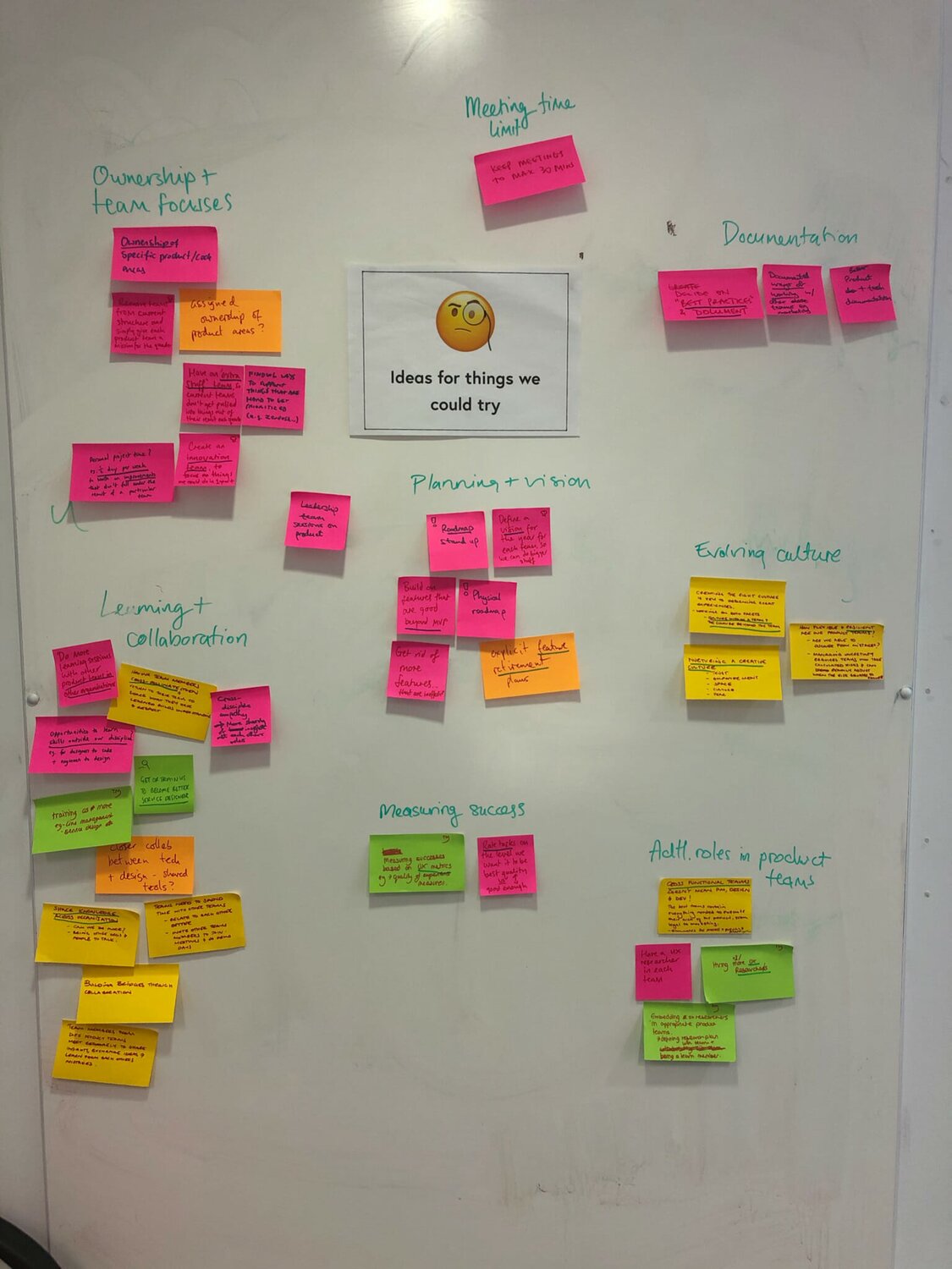 We also had a consistent set of organisation cadences that made it clear when change could be expected. Teams worked in fortnightly sprints and were encouraged to adjust plans and improve the way they worked within that time frame.
