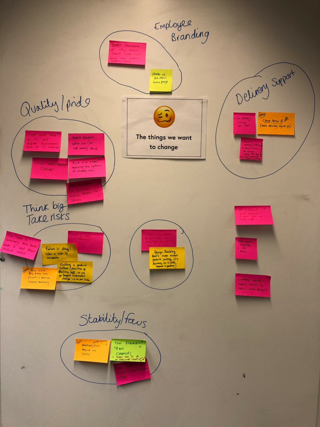 One way we did this at FutureLearn was to run something called The Big Retro, where we mixed up teams and ran a retrospective looking at the things we wanted to keep, change and ideas for how to do it that were bigger than individual teams. This gave us as a leadership team the agency to make some of these changes we need to make and the teams a sense that they were making the change and it wasn’t being done to them. I’ve written more about this here.