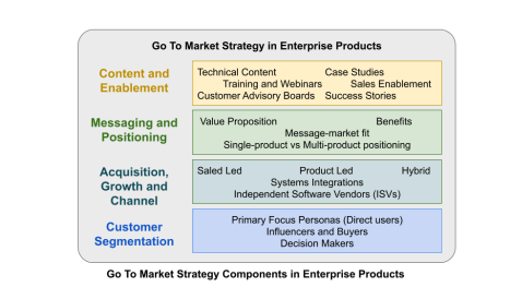 The critical facets covered encompass customer segmentation to comprehend and address varied stakeholder needs, diverse account acquisition strategies (such as sales-led, product-led, and hybrid approaches), and the pivotal role of partners like Systems Integrators and Independent Software Vendors in expanding customer acquisition. Furthermore, it explores the significance of product packaging, positioning, messaging, and content creation in setting enterprise products apart in the market. Additionally, the article underscores the vital role of internal and external training, customer advisory boards, and generating content like case studies and best practice guides to bolster each phase of the customer lifecycle.