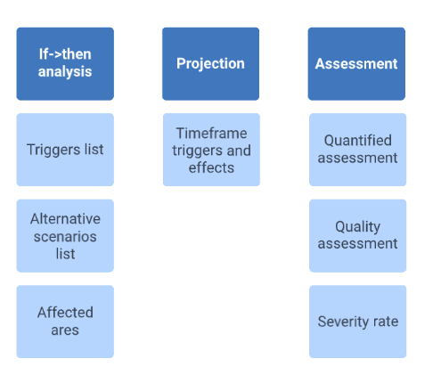 Make projections based on alternative scenarios. Making projections based on alternative scenarios and estimating and comparing possible outcomes can help not only to identify other risk areas but also to find opportunities.