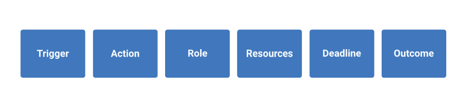To effectively address risks, it's important to follow a framework that includes the following pillars: trigger, action, role, resources, deadline, and outcome.