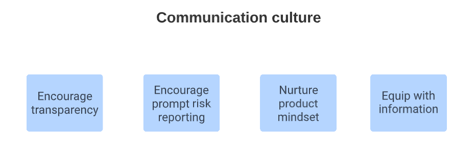 Given that a product manager never operates in isolation, it is critical to establish a communication culture that facilitates the prompt identification of risk areas.