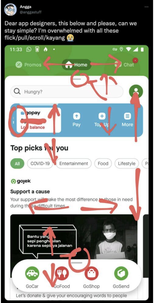 In 2020 we revamped our app design at Gojek (see image above) and the subsequent internet outrage was felt internally for months afterwards leading to a huge pivot to caution for any future release that affected learned UX.
