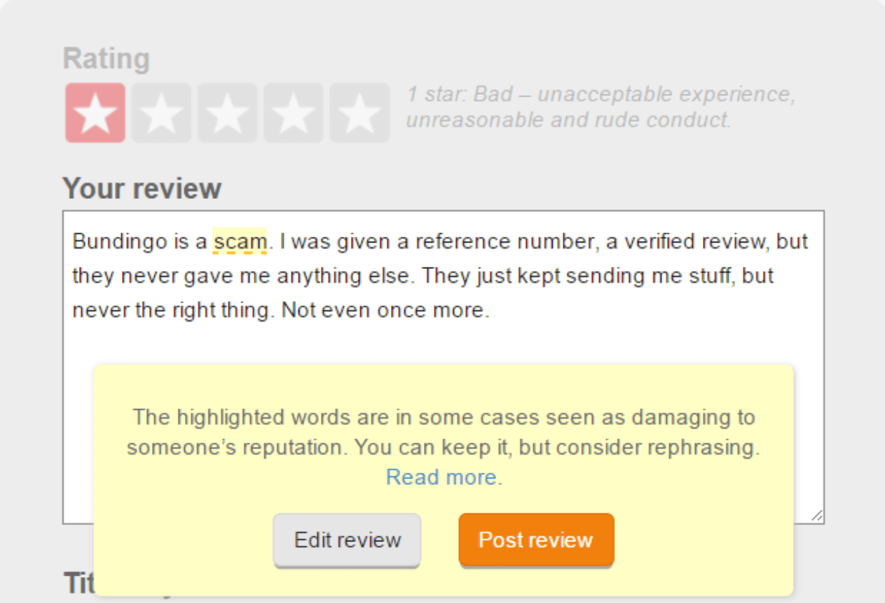 To see if real value could be extracted from these kind of reviews, Trustpilot began to highlight words that are typically considered defamatory: