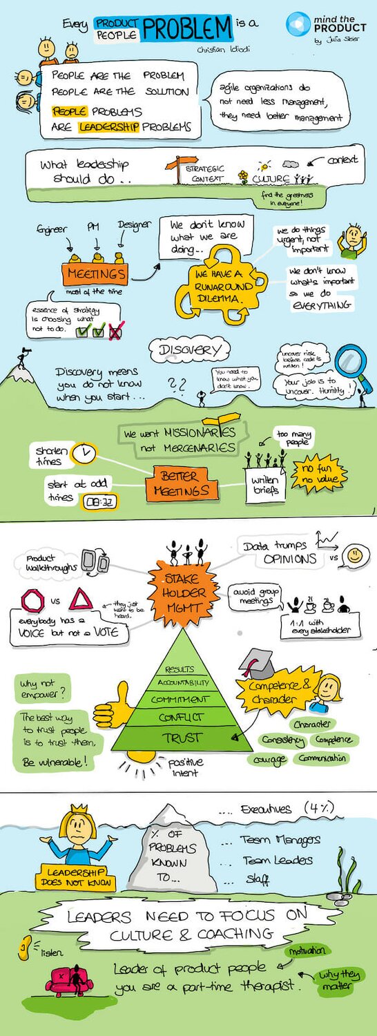 Product people repeatedly raise challenges with communication, resources, conflicting priorities, stakeholders, the roadmap, business cases. These are rarely technical issues. As Christian says, maybe every problem, rather than just being a people problem, is actually a leadership problem.