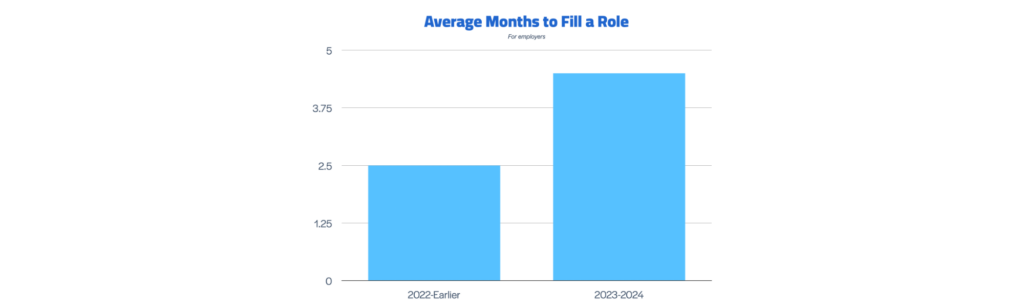 On the employer side, the challenges they face include the pressure to reduce or completely mitigate the risk of ‘bad hires’, managing more candidates with less resources, and needing to look below the surface of a “Product Manager” job title. These are compounded by the sheer volume of applicants ranging from the 100’s to 1000’s for every job posting. Like candidates, employers are taking nearly double the amount of time to fill roles.