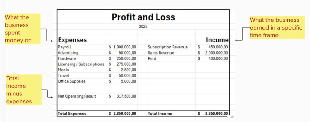 - Net operating result: It is the difference between Income and Expenses and either shows up as a Profit (Income higher than Expenses), or a Net Loss (Expenses higher than Income).