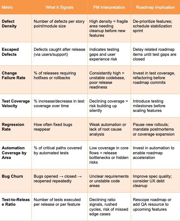 Quality, when made visible early, becomes leverage. It lets you push back on risky roadmap asks with data, prioritize tech debt with clarity, and align cross-functional teams around readiness, not just desirability.
