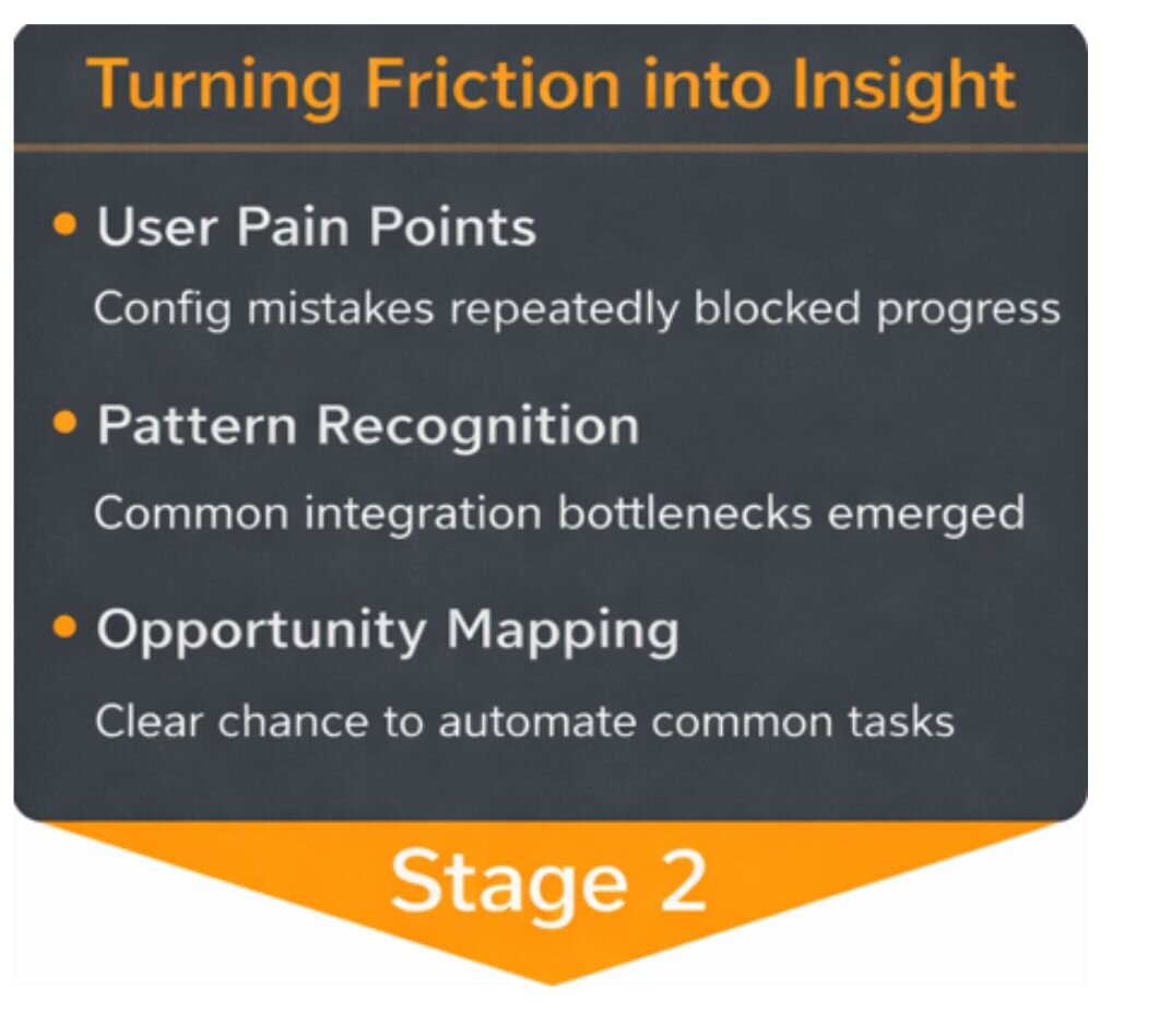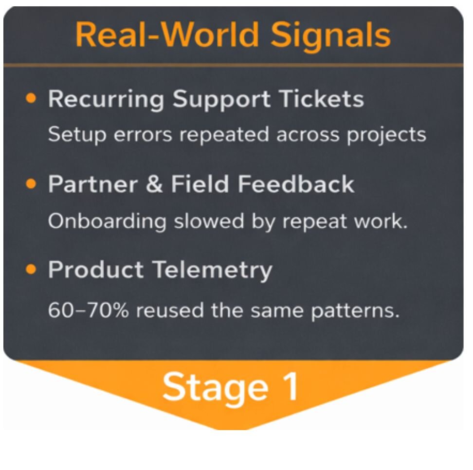 The first clear signal emerged from support trends. A meaningful share of recurring tickets—especially from newly formed teams—weren’t related to defects or outages. Instead, they pointed to setup issues: data connected incorrectly, flows not following intended patterns, and teams unintentionally drifting from recommended usage.