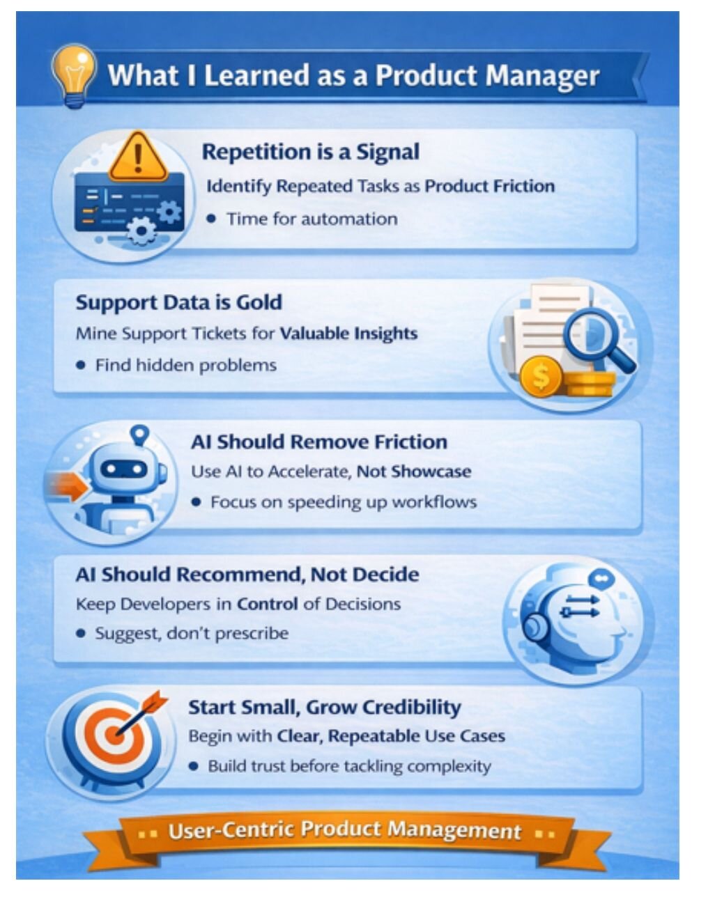 This journey—from observing repetitive developer workflows to introducing AI in a way that earned trust—wasn’t driven by a single insight, but by a series of product decisions grounded in real usage and feedback. The lessons below reflect how those decisions shaped both the product and my approach as a Product Manager