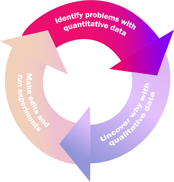 - Identify problems using quantitative data, like low conversion rates, high bounce rates or rising churn.