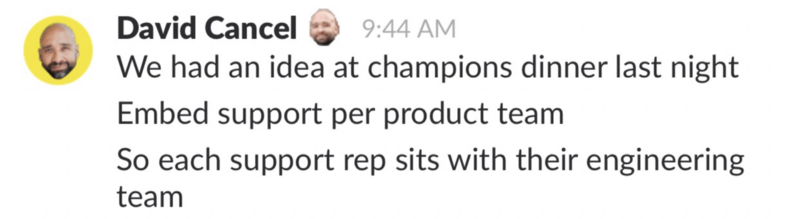 Drift's David Cancel dramatically shortened the feedback loop between customer support reps and product engineers by adding them to the same team.