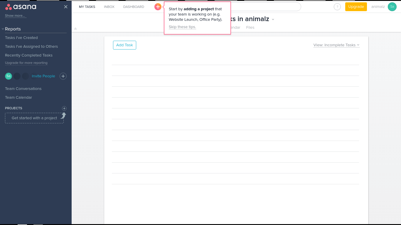 Simple tooltips guide new users to Asana's key features, straight from a user's first in-app experience.