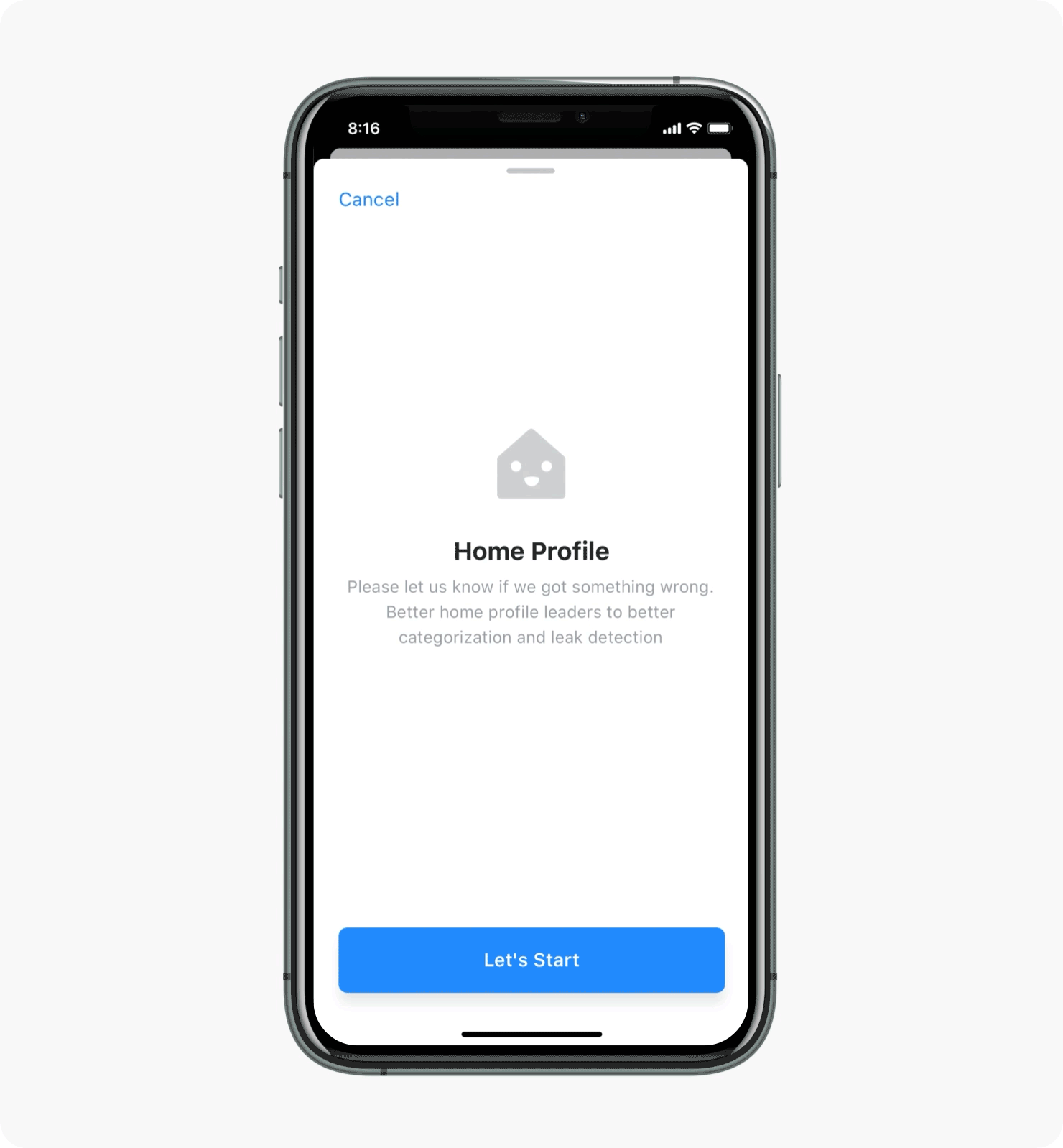 We call this mapping a home profile and this was the first area to improve. Instead of waiting for two weeks to learn a home's fixtures and appliances, we'd give the user an option to respond to a short survey while onboarding and then map it manually.