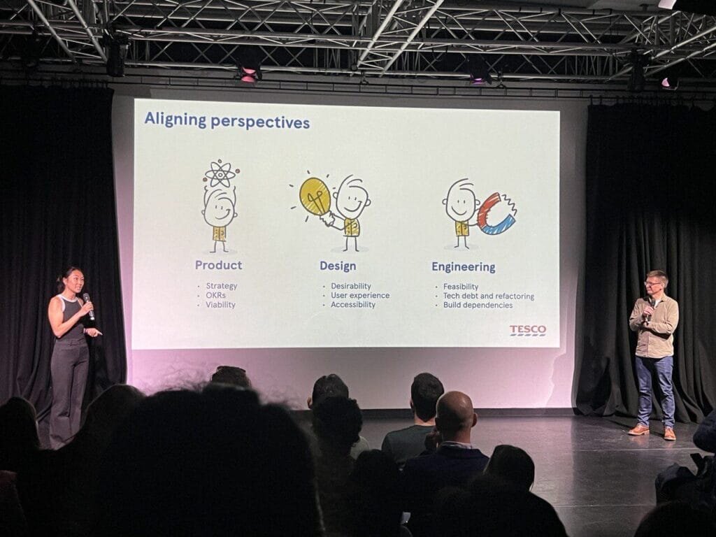 The Collaboration in Product Trios/Duos event. As a former Software Engineer and an aspiring Product Manager, I found the insights shared incredibly valuable. First up was the dynamic trio from Mews: Aldair Borges (Senior Product Manager), Jakub Tkadleček (Engineering Manager), and Zuzana Hrušovská (Product Design Lead). They shared their journey from a major failure due to working in silos to a success story of close-knit collaboration. By integrating their efforts at every stage, from discovery to solutioning to delivery, they ensured every team was informed and involved. Daily discussions, a democratic approach to conflict resolution rooted in data and over ice cream 🍦, and a focus on viability, feasibility, and usability were key to their success. Next, we heard from Amanda Ho (Product Manager) and Dr. John McCarthy (Senior UX Designer) at Tesco, who, alongside their engineering team in Bangalore, India, demonstrated the power of a well-coordinated product team. They emphasised the importance of structured syncs for discovery and definition, design jams for prototyping and testing, and sprint reviews for implementation and delivery. By aligning their focuses – product on strategy and OKRs, design on user experience and accessibility, and engineering on feasibility and tech health – they de-risk assumptions, expedite decision-making, and build features quickly and iteratively. Key takeaway: By bringing engineering in at the start of your project, you can avoid a lot of turbulence down the line, and by keeping design involved during the release process, you can ensure the finished product delivers results.