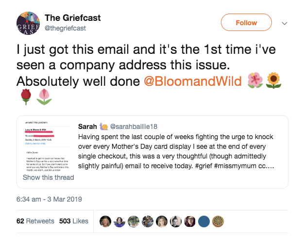 Mark Warman MP even spoke about it in Parliament, using Bloom & Wild as an example to challenge more businesses to think about the way they speak to their customers around sensitive occasions.