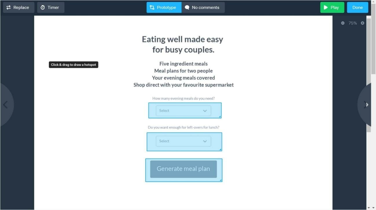 Before building anything in Bubble, I spent a few hours testing design ideas using a free prototyping tool and whoever I could find around the house as guinea pigs.
