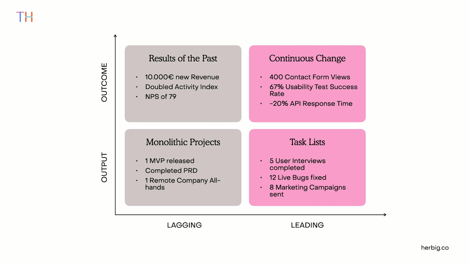- Tim‘s article on thinking beyond outcomes in OKRs: https://herbig.co/okrs-beyond-outcomes/ – helpful for teams that are still hesitating to start using "wrong" OKRs