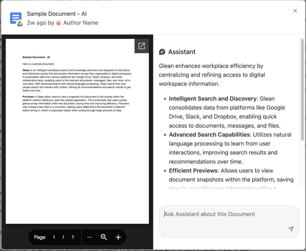 GleanAI Enterprise, allowing users to verify the summarisation with the original source document (Screenshot as of November 24, 2024)