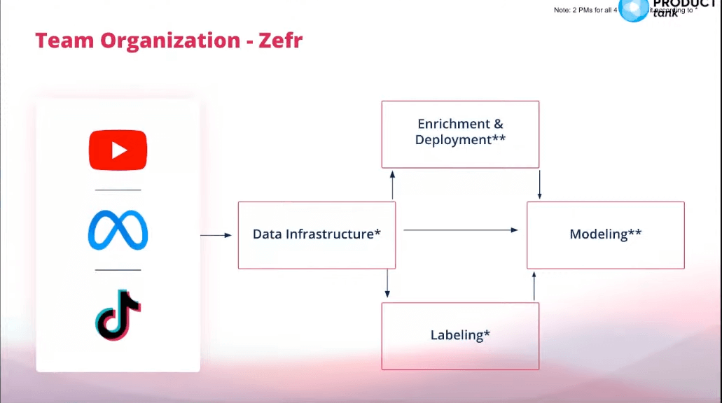 When managing data-centric teams, Jon explained that the role of the product manager is slightly different to a more customer-facing product role. “They have to love the technical details on the interfaces and must produce useful documentation,” he said. Jon advocated an agile approach with two-week sprints, ensuring consistent and well-documented results—this system has worked well for the data team at Zefr.