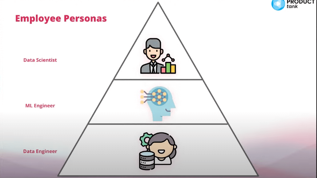 To help the audience better understand a standard data team hierarchy, Jon shared a helpful pyramid explaining the key roles in a data team.