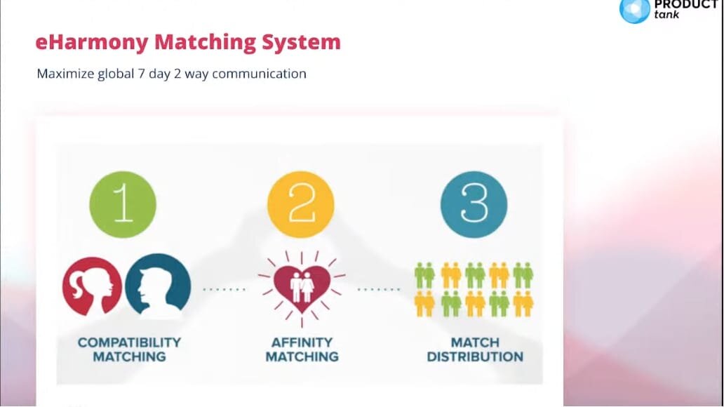 From 2013-2016, eHarmony had a robust machine-learning infrastructure. Jon explained how its matching system was based on three metrics: Compatibility matching, affinity matching, and match distribution. “This system was created through linear models by a group of psychologists we employed,” he said.