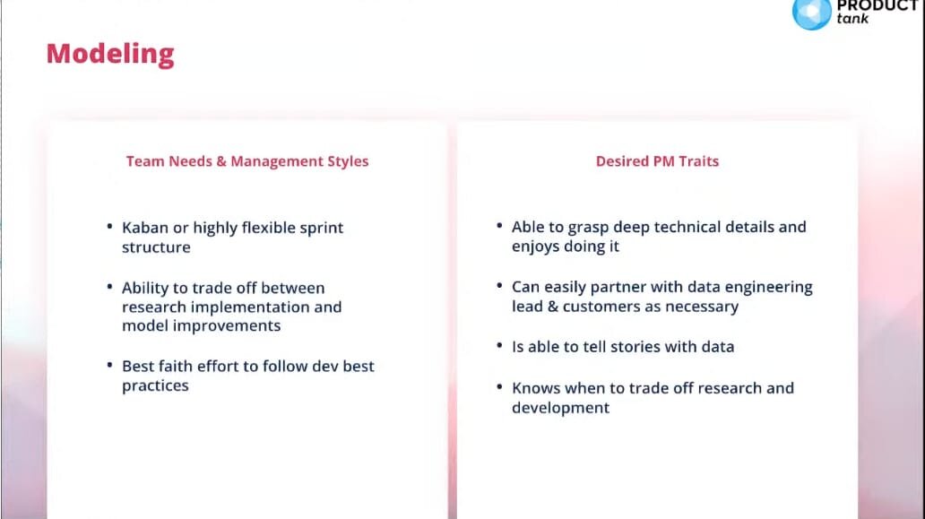Finally, the product manager has to be able to tell great stories with data while also knowing when to trade off research and development. Getting into the technical weeds is imperative.