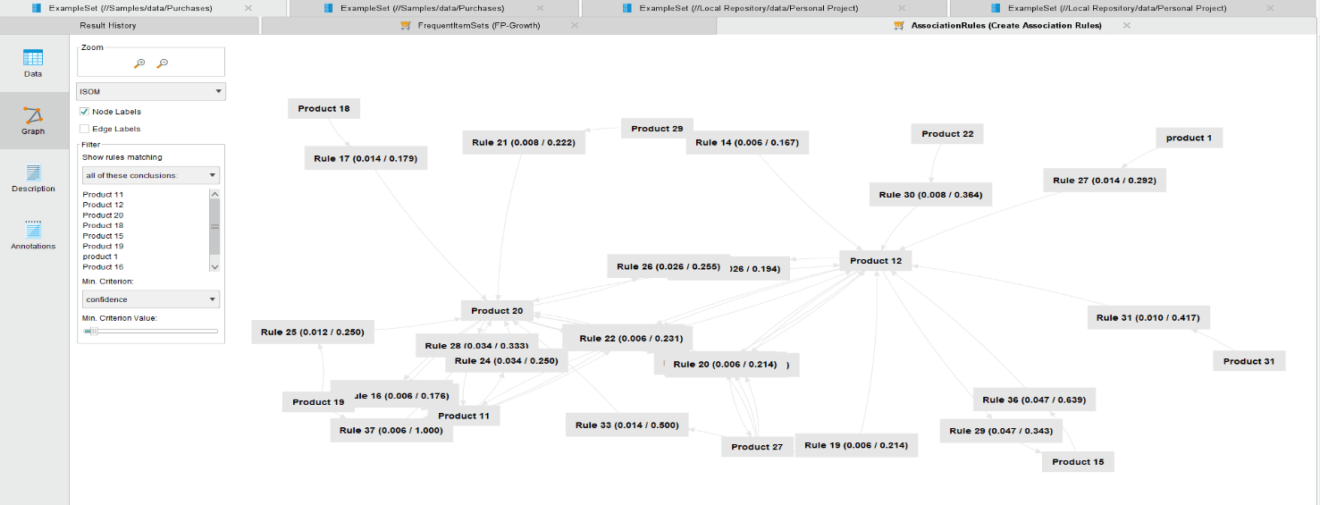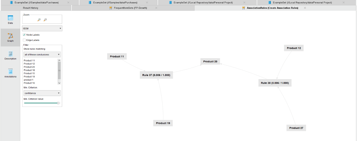 Focusing on the highest confidence level I narrow my product associations to four products with one association and one product with two associations. Product 20 would be the most likely candidate based on our customers previous purchasing history.