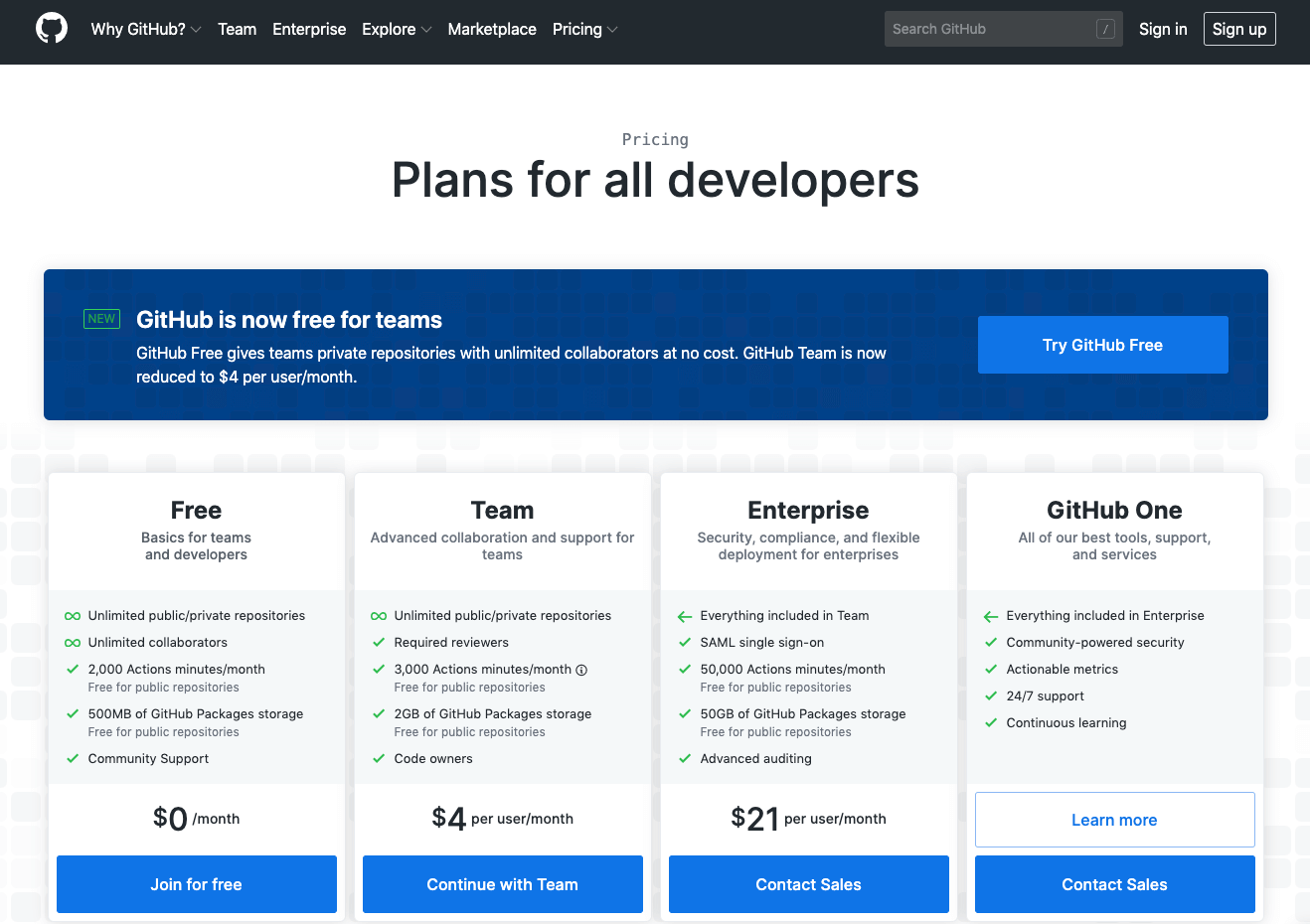 Take Github’s pricing (at the time of publishing) as an example. Here you can see that"code owners" is not listed in the free package, which is suitable for one developer or very small teams. This is because a team of three can probably oversee who has control over the different parts of the code, and that is why it's not necessarily a value driver of individuals or very small teams. But, for slightly bigger teams, it becomes really important to assign ownership of certain parts of the code to certain people.