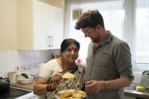 One of our colleagues told us about a firm friendship formed between their friend Tom, and Monju, originally from Bengal, who met in a supermarket in east London. While Tom was shopping for ingredients to cook dinner for his friends, he struck up a conversation with Monju, resulting in a personal cooking lesson from her. Their friendship has continued to flourish, over a love of food and of course, delicious traditional Bengali dishes. What a great idea! How could we use cooking to connect older and younger generations?