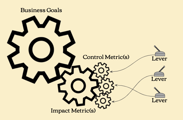 - Small gears (our Control Metrics) are turned by the levers