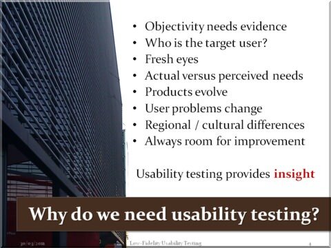 We spend our time voicing the needs of our customers within our organisation. Consequently, it's all too easy to fall into the trap of thinking we know what our users need without bothering to ask them. Usability testing forces us to find out how our users are working with our products. I will guarantee you that every set of usability tests you run will reveal at least one wholly new insight.