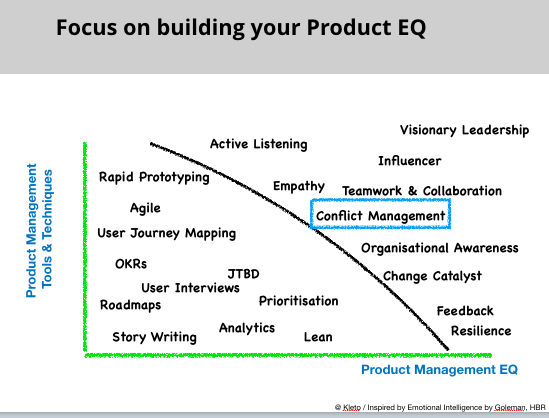 To be successful as a product manager, we all need tools and techniques that lay the basis of our craft, but even more importantly we need the EQ to deliver. After all, what are the chances of successfully building a complicated roadmap without the ability to resolve conflict, give and receive feedback, have organisational awareness and empathy?
