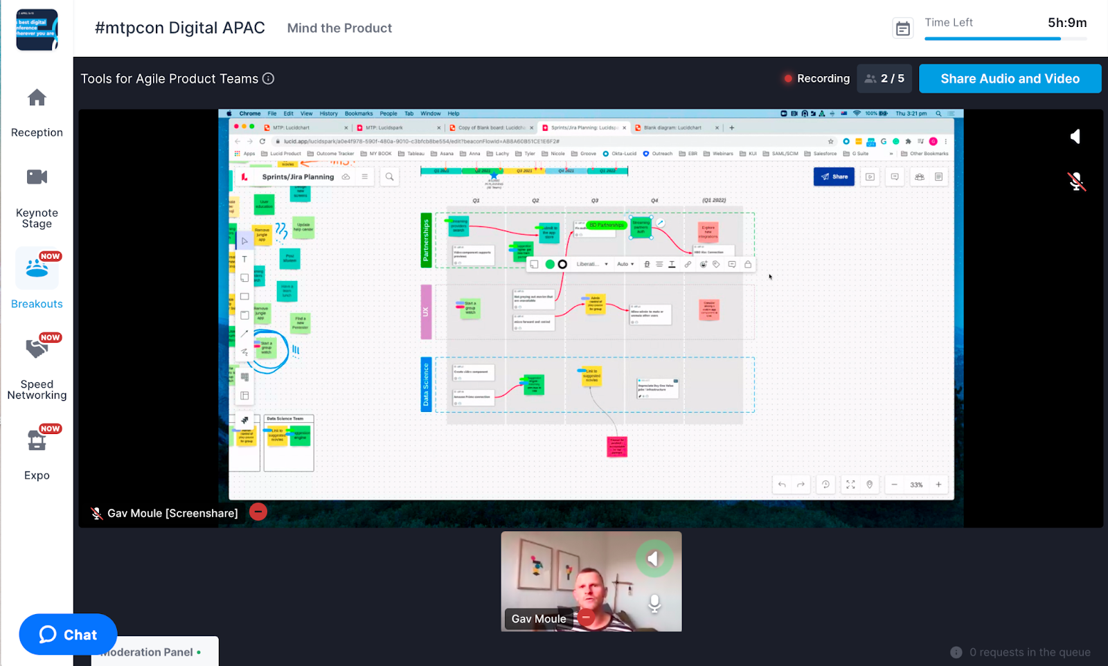 What does it look like for a product team to collaborate, remotely and in person? Gav Moule from Lucidspark walked us through some tips and tricks on how to facilitate Agile workshops using Lucidspark boards — they let you add emojis to sticky notes like you're reacting to a message in Slack, offer spell check, and you can insert GIFs. Minds blown.