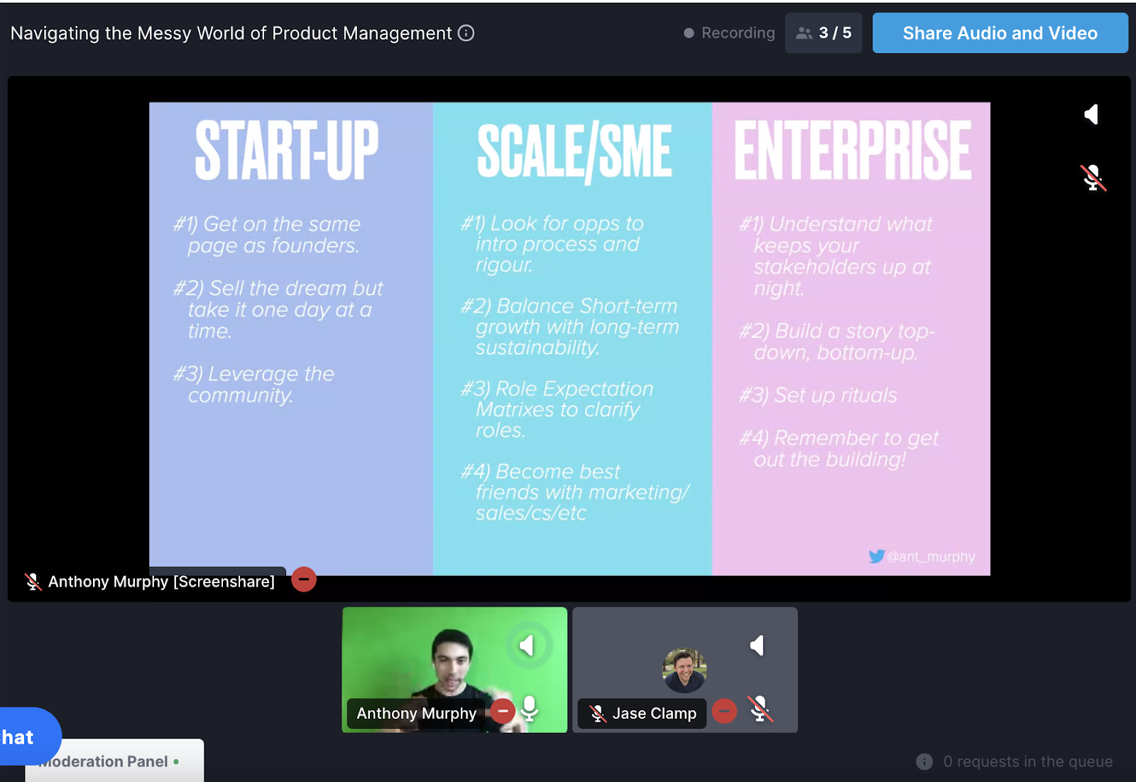 Because you’re not working with large teams at start-up stage, product managers may face alignment issues due to a lack of constant contact with stakeholders and C-suite level members. Anthony advised us to always be looking for opportunities, be aware of the paradox between focusing on ‘now’ vs ‘later. “As you scale, you need to be more strategic in focusing on your future. Consistently reflect on where you are and where you’re going.
