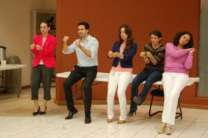 Here’s the interesting thing: What made the difference for her was that she’d drawn on a character we’d discovered in our training session. She was able, with me as guide, to discover a resource that was already there and use it for this purpose. We had “tried on” several characters from my selection, such as the game-show host, for added dynamism, or the military leader, for increased gravitas. The selection came after filming the best persona and playing back.